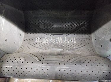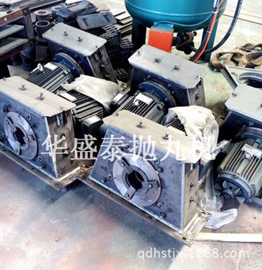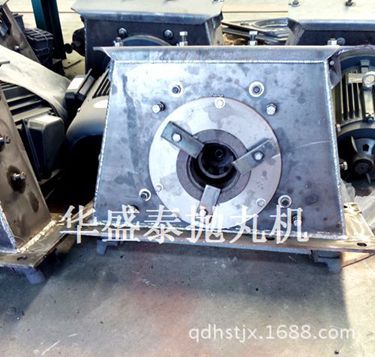 拋丸器中的雙圓盤鉚接成一體,構成葉輪體。葉輪體上裝有八片葉片,葉輪體與位于拋丸輪中心的分丸輪一起裝在由電動機驅動的主軸上。罩內(nèi)襯有護板,罩殼上裝有定向套及進丸管。工作時,彈丸由進丸管流入拋丸器。跟葉片作同步旋轉的分丸輪使彈丸得到初速度。彈丸經(jīng)定向套的窗口飛出,拋到定向套外面的高速旋轉的葉片上,被葉片進一步加速后,拋射到被清理工件的表面上。因為分丸輪和葉片作同步旋轉保證了彈丸向葉片的無振動傳遞,從而減小了對葉片的磨損。