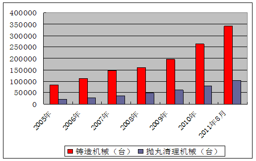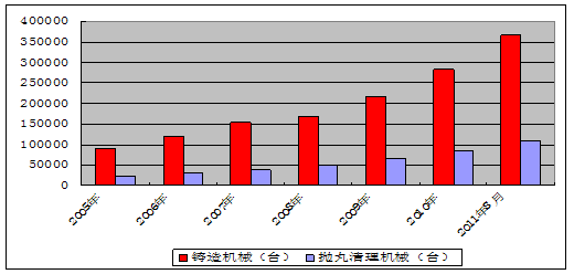 2005-2011年拋丸機(jī)產(chǎn)量情況統(tǒng)計表