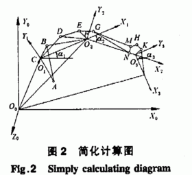 拋丸機卸料機構(gòu)工作時,油缸的瞬時長度可以求出,則可以求得a。,a:,a,,由姿態(tài)角和油缸長度可以確定工作裝置的姿態(tài)(位置和姿態(tài))。