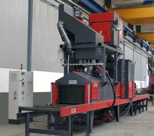 1、采用通過式,通過式采用輥道輸送爬架網(wǎng)片至拋丸室;